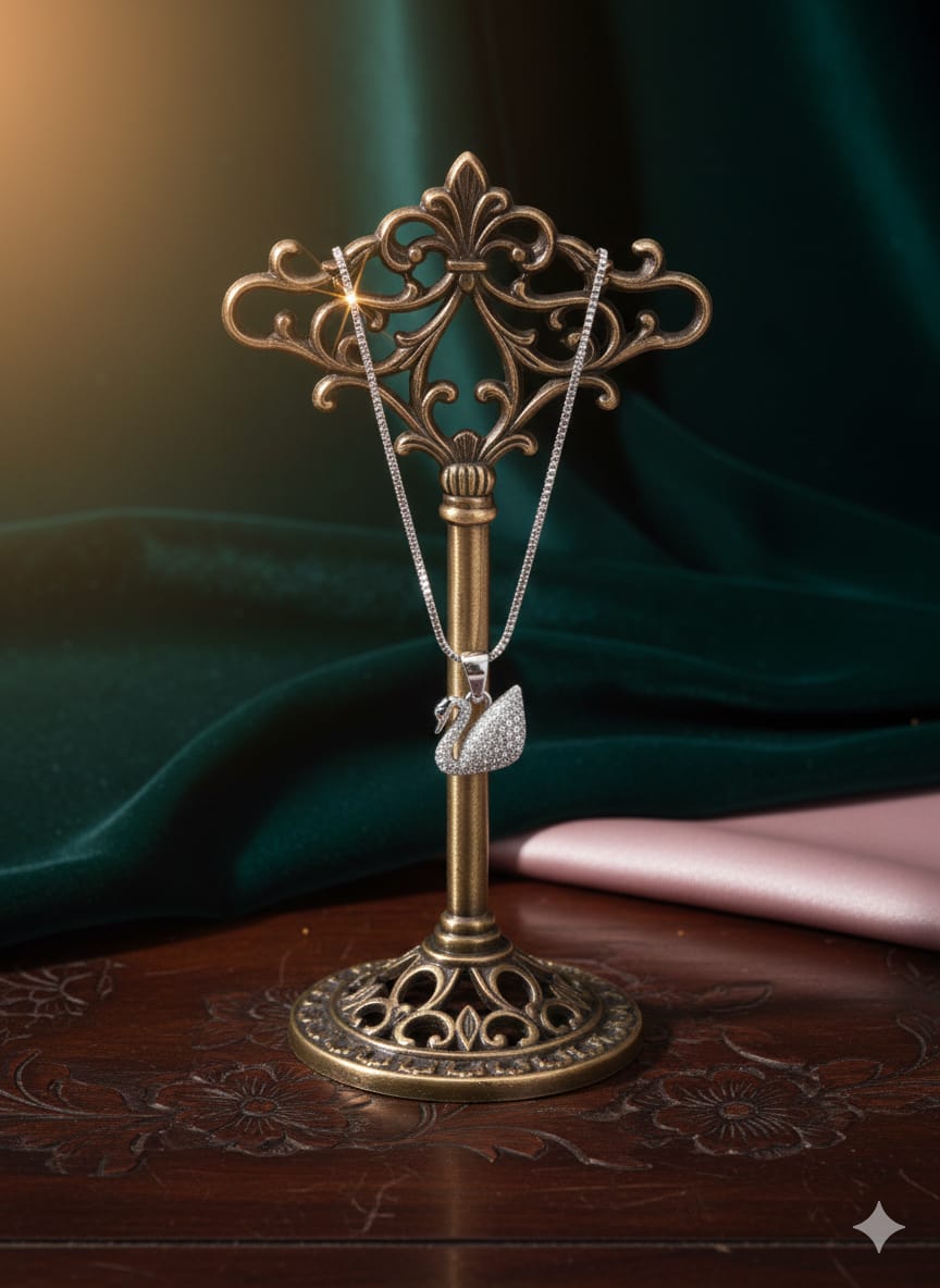 Add a touch of grace to your jewelry collection with this stunning Swan-shaped pendant. Crafted with precision, it combines the timeless elegance of a swan with the sparkling brilliance of high-grade American Diamonds (Cubic Zirconia), making it a must-have accessory for every modern woman.