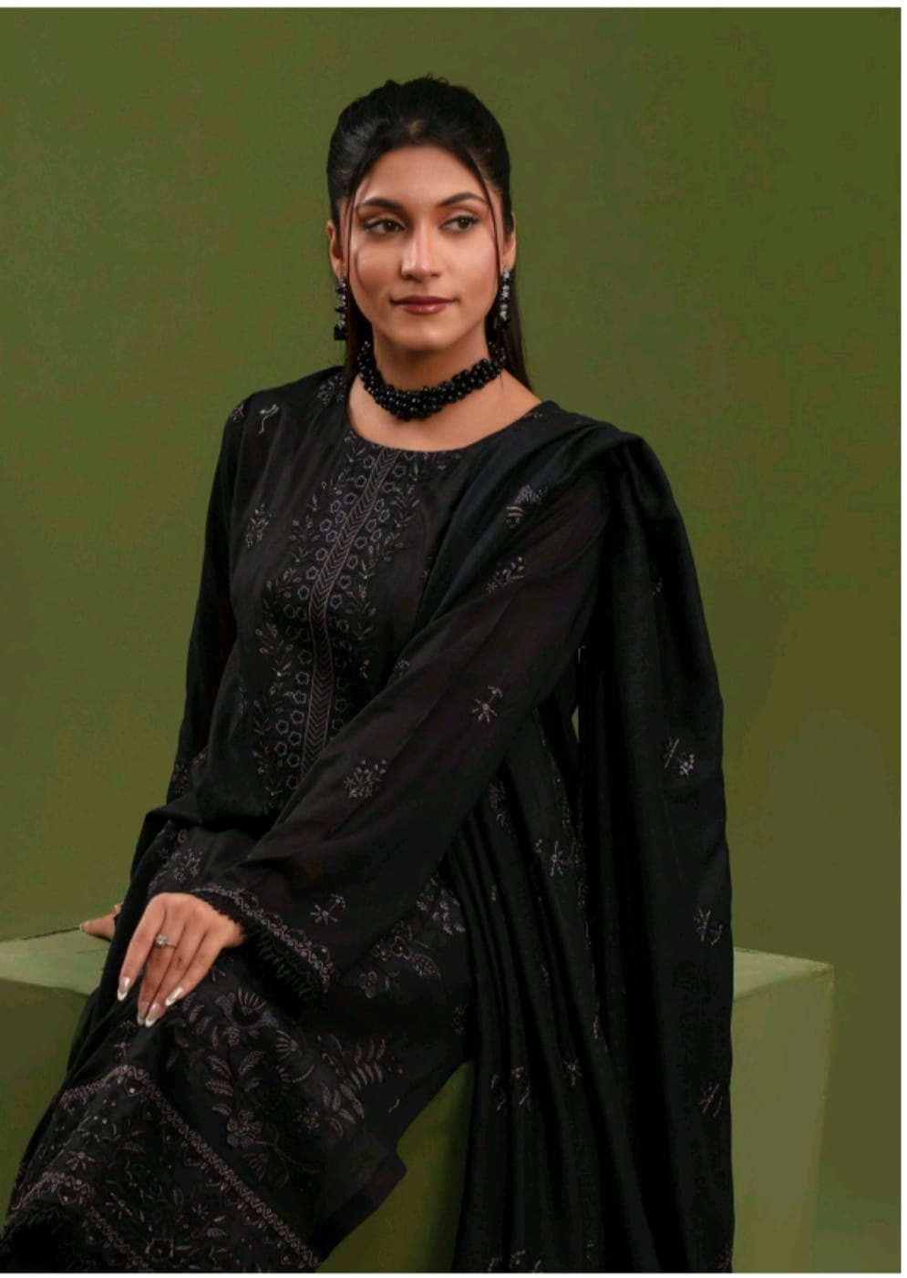 • Diamond slub embroidered dupatta